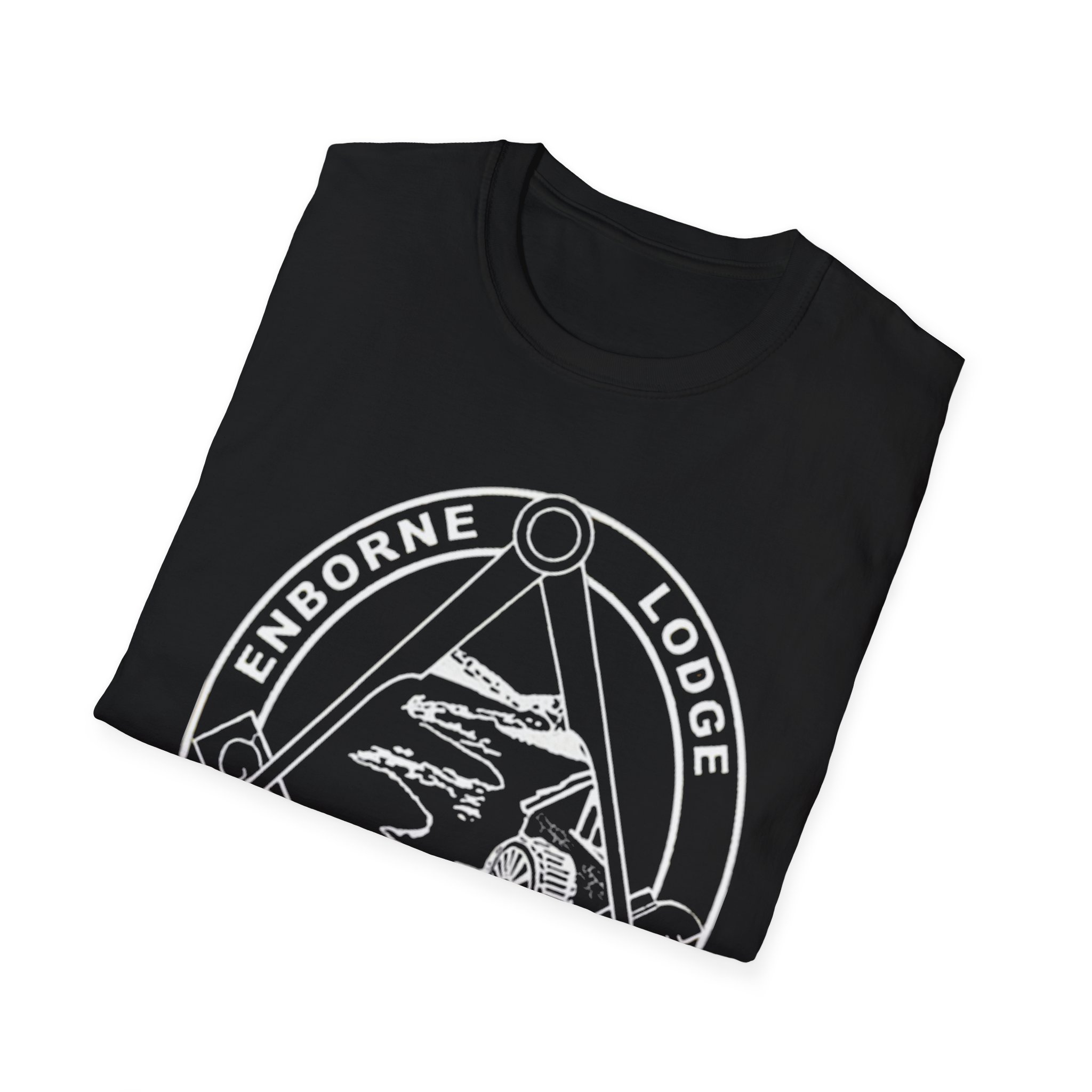 A lightweight, ring-spun cotton tee with a bold lodge emblem printed on the chest. The monochrome badge shows mountains, lodge architecture, and laurel details arranged inside a compass-like frame, giving an outdoorsy, vintage-club feel. Soft to the touch and cut in a classic crew-neck silhouette, this shirt wears easily from trailheads to town. It hangs true to size and carries subtle texture variations in natural colorways, while DTF and DTG printing methods keep the emblem crisp and durable. Wear it on cool mornings, around a campfire, or while sharing stories at lodge gatherings.